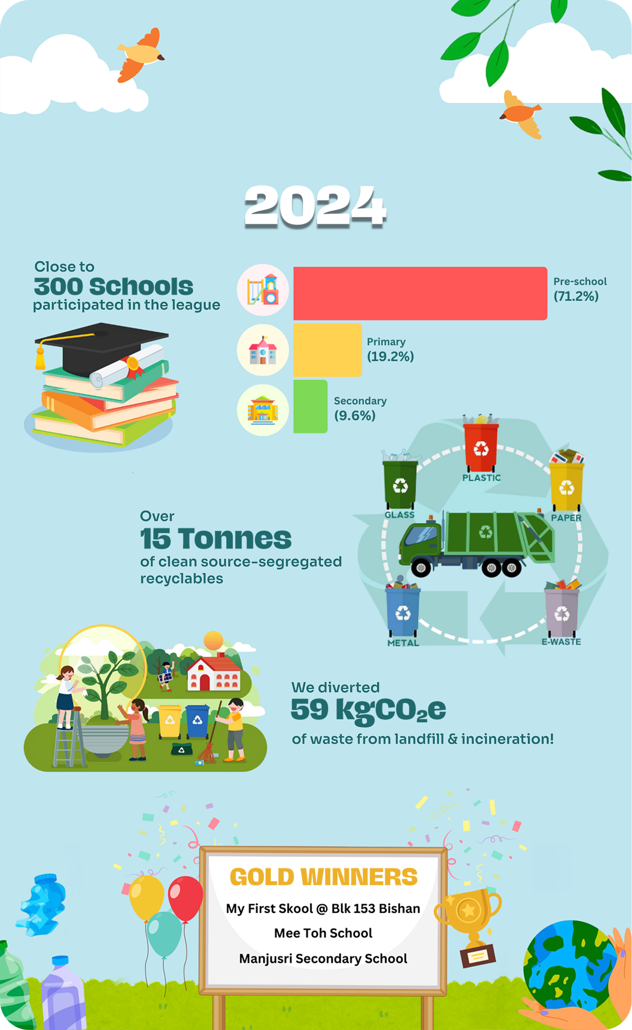 All pre, primary and secondary schools in Singapore are eligible to sign up for the School Recycling League.